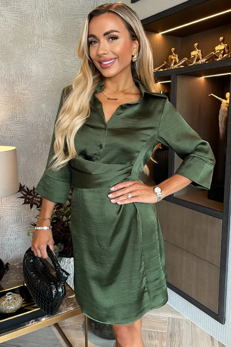 Detail Satin Mini Dress. Featuring 3/4 length cuffed sleeves, a