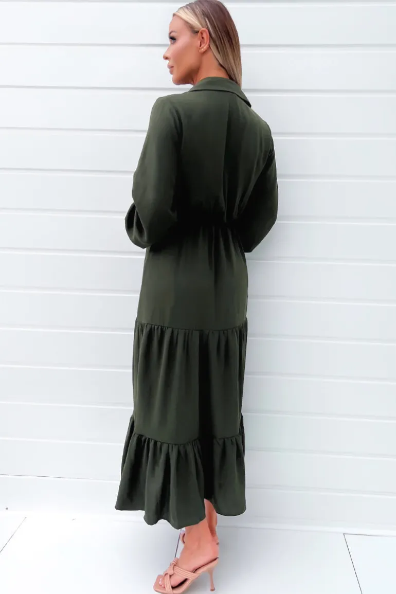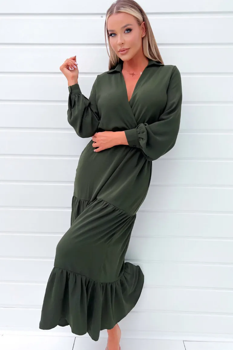 Our Olive Long Sleeve Wrap Top Smock Midi Dress is a wardrobe must