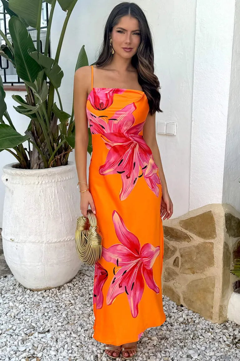 Embrace your glamorous side with our Orange And Pink Floral Print