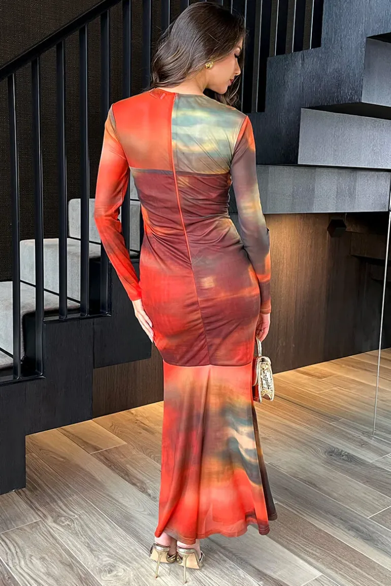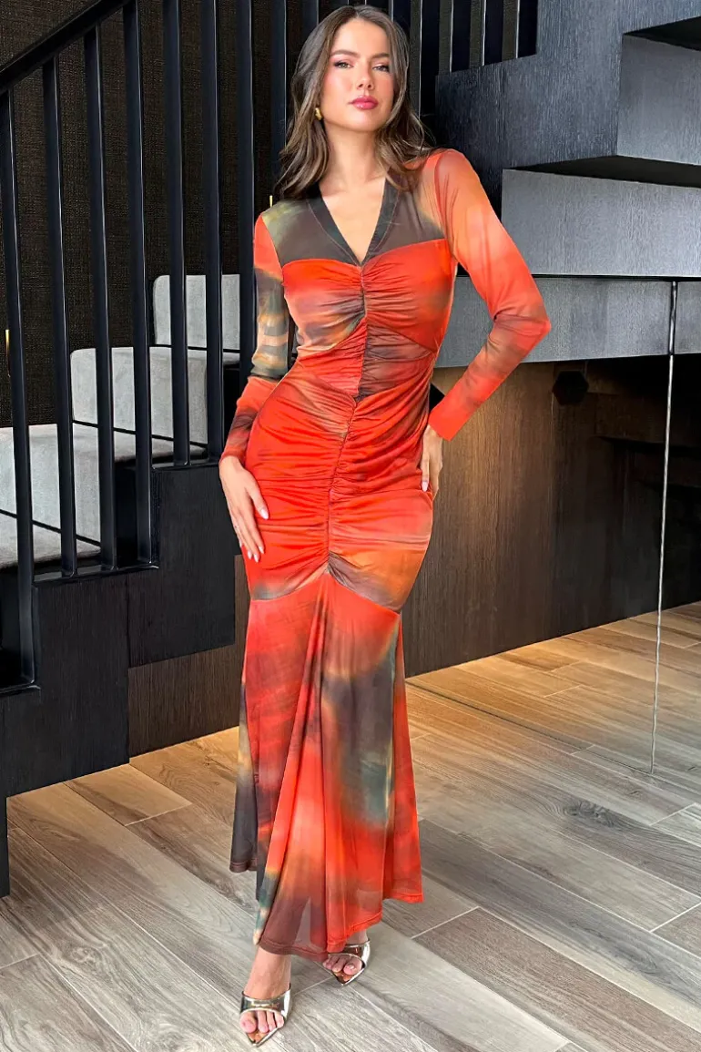 Look and feel gorgeous in our sophisticated Orange Ombre Mesh Contrast