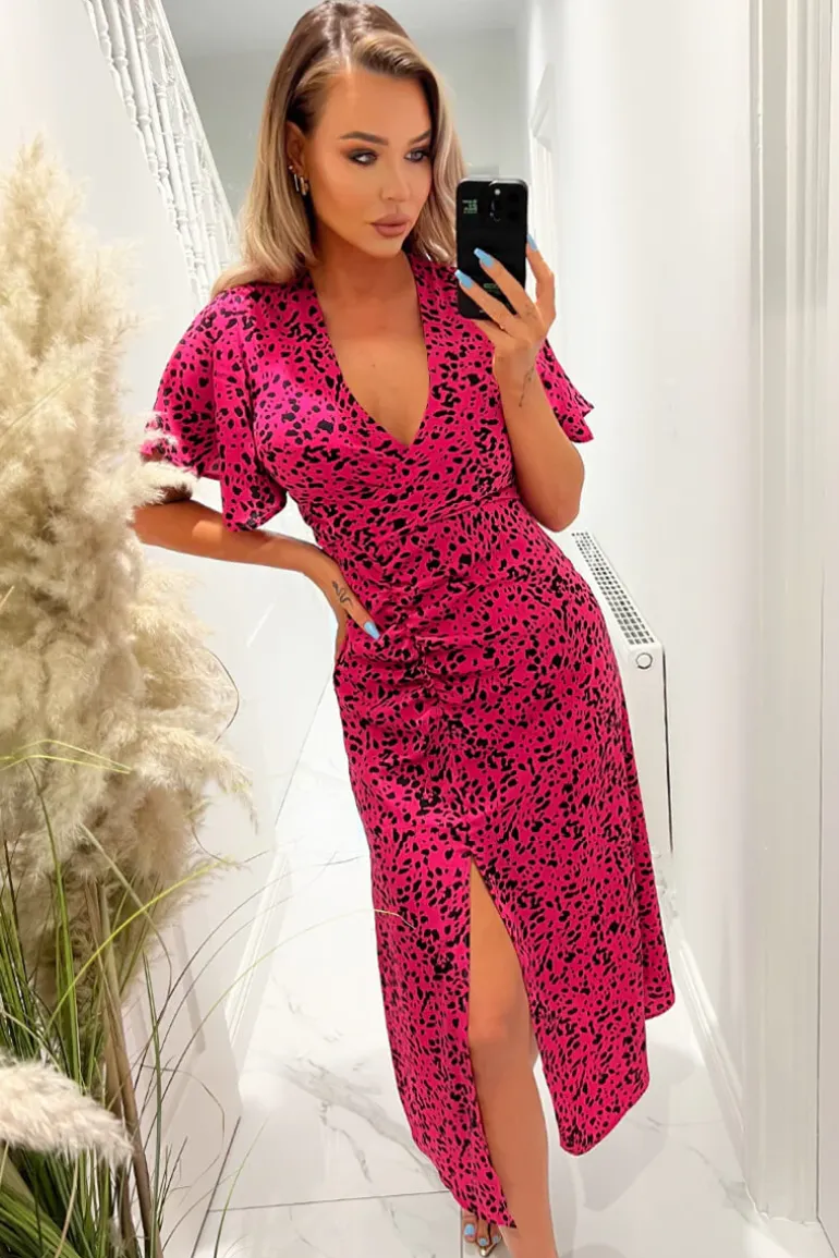Stay on trend with this Pink And Black Printed Split Skirt Midi