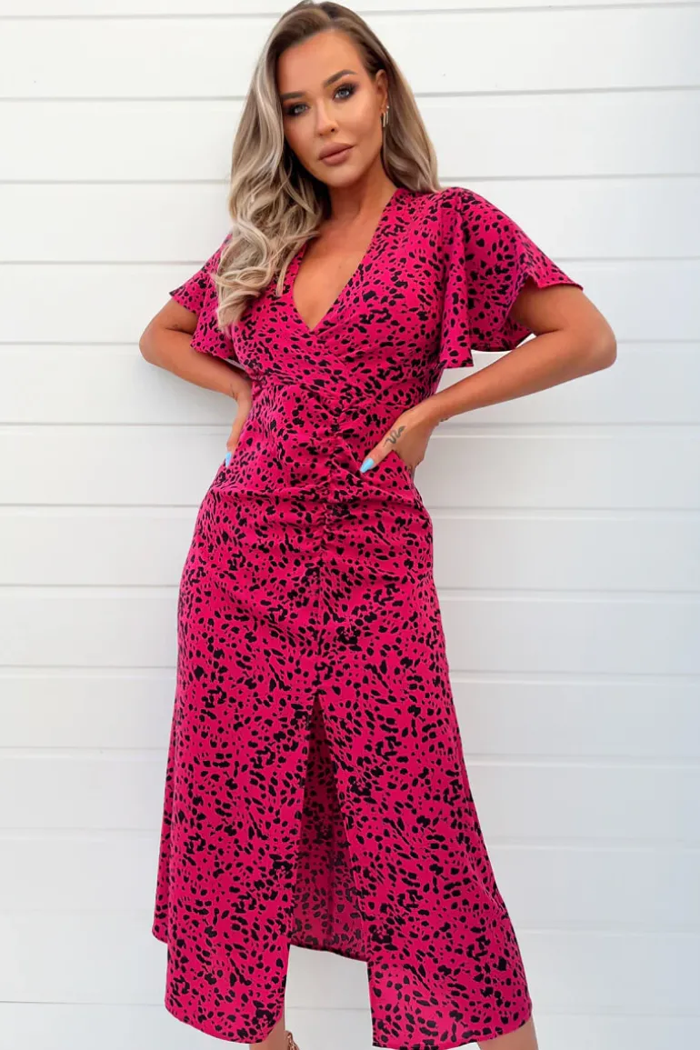 Dress. Featuring butterfly sleeves, a flattering wrap over top, ruched
