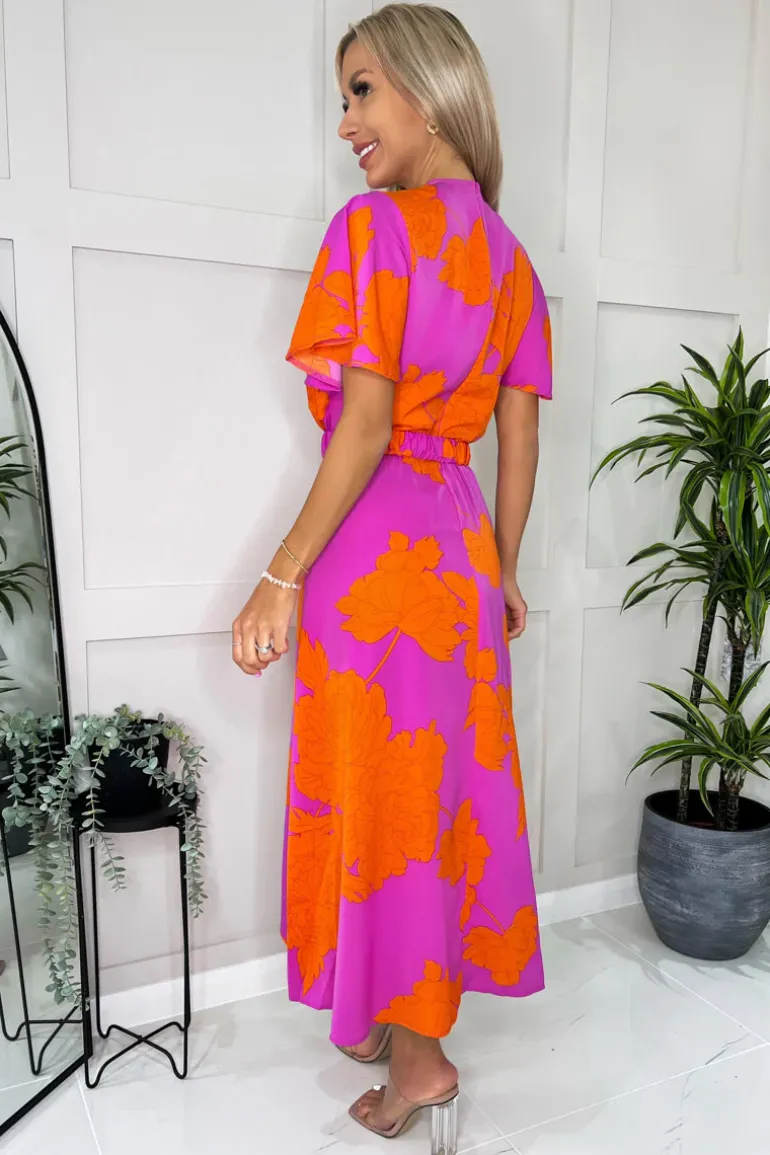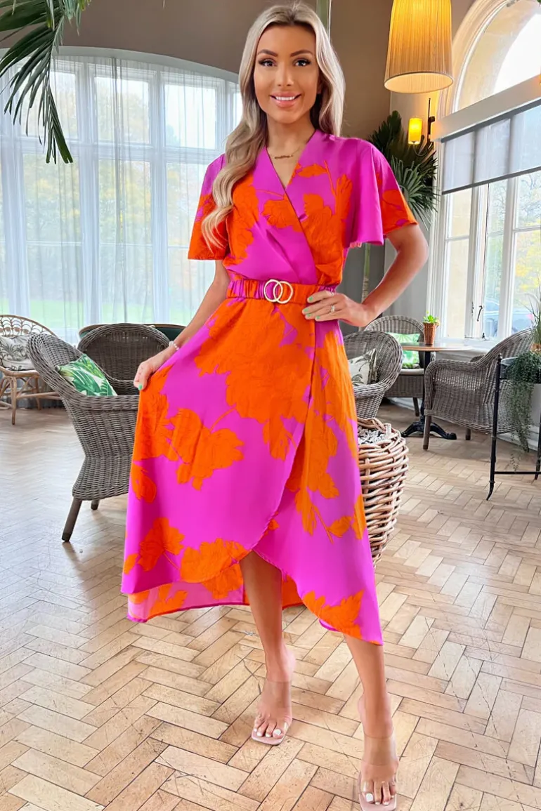 Stay sophisticated in this Pink And Orange Floral Print Belted Wrap