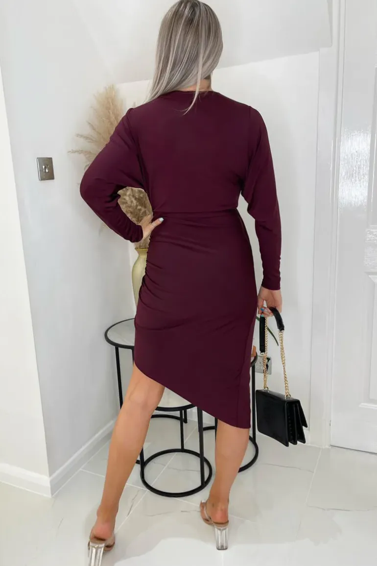 This Plum Ruched Side Wrap Top Midi Dress is perfect for showing of