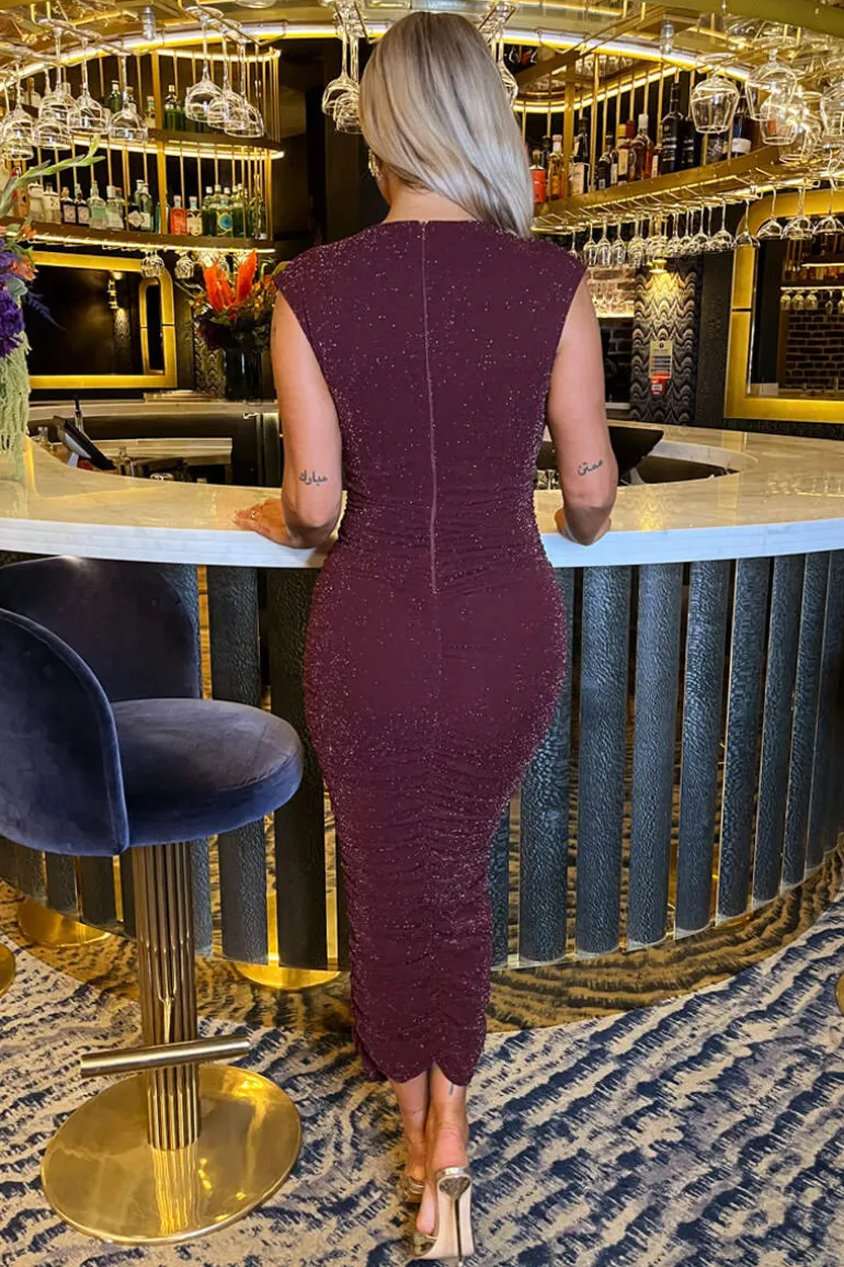 Get ready to sparkle this season with our Plum Sparkle Wrap Top Ruched