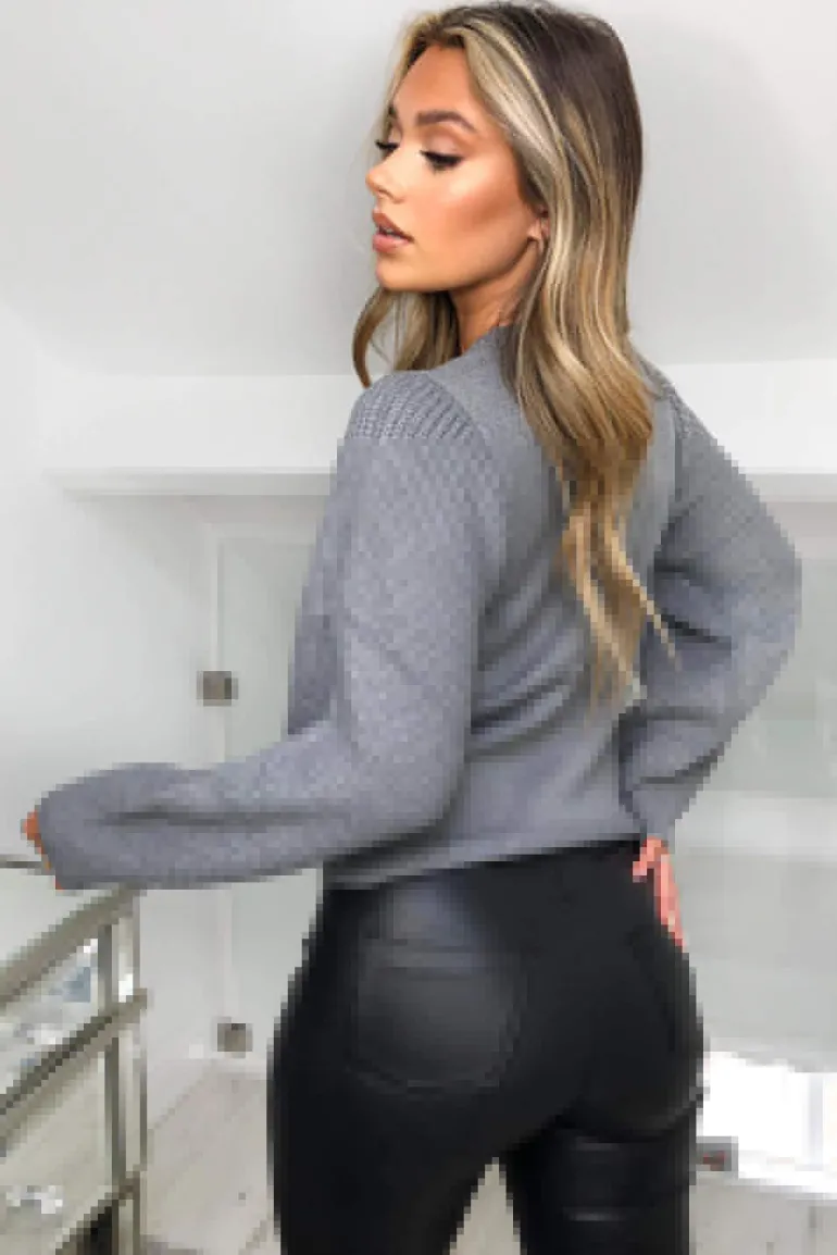 Keep warm yet stylish in our Silver Volume Sleeve Knitted Jumper,