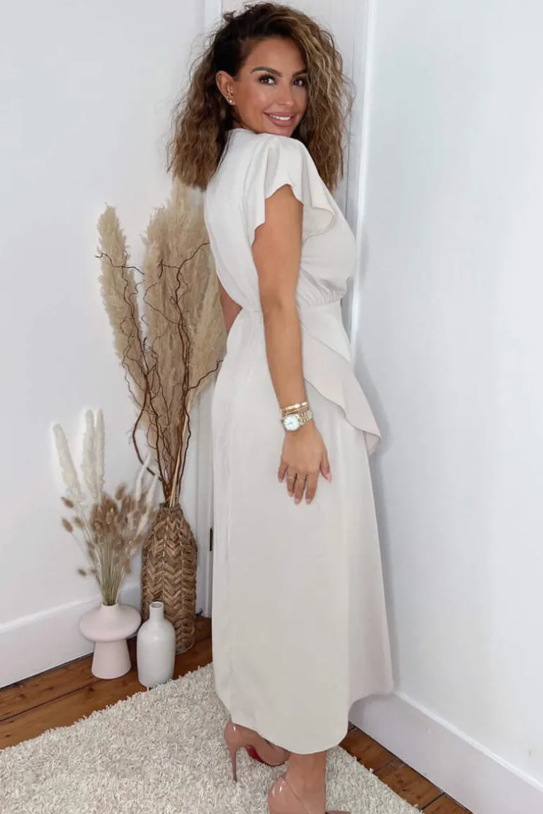 Our Stone Frill Detail Double Split Skirt Midi Dress is right on trend