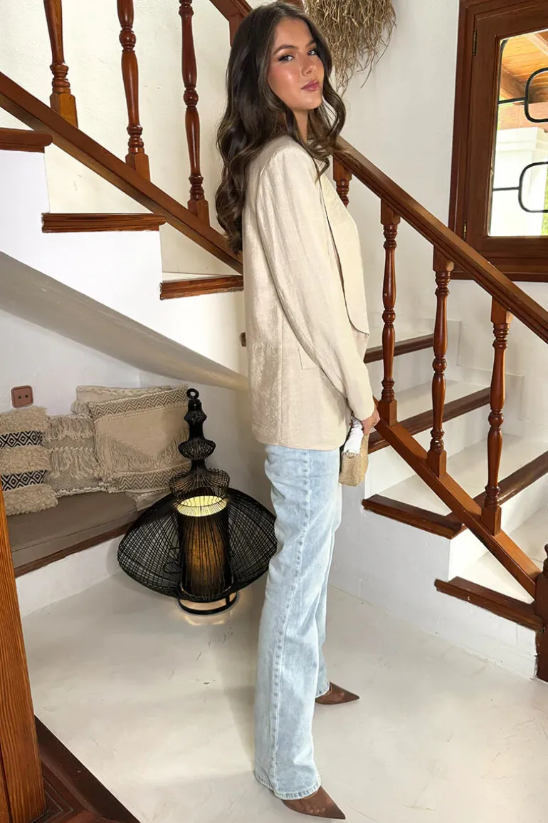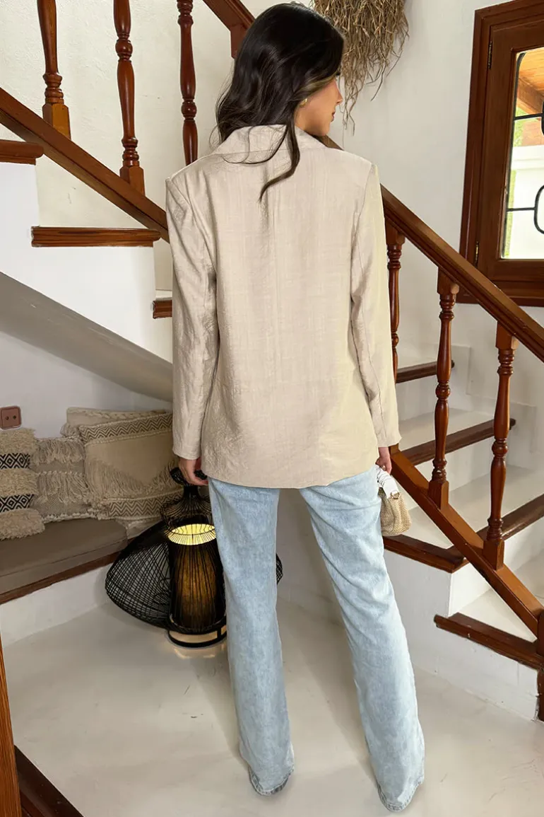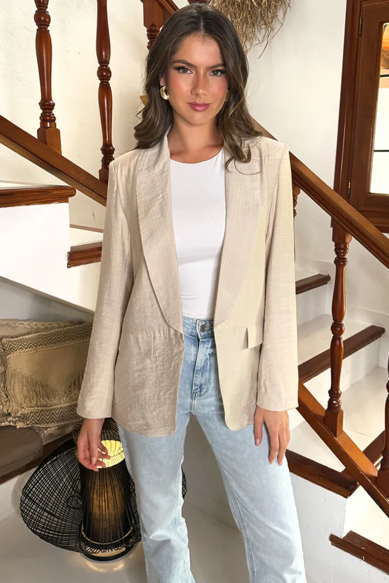 Front Blazer. Featuring a lightweight linen-feel fabric with lining,