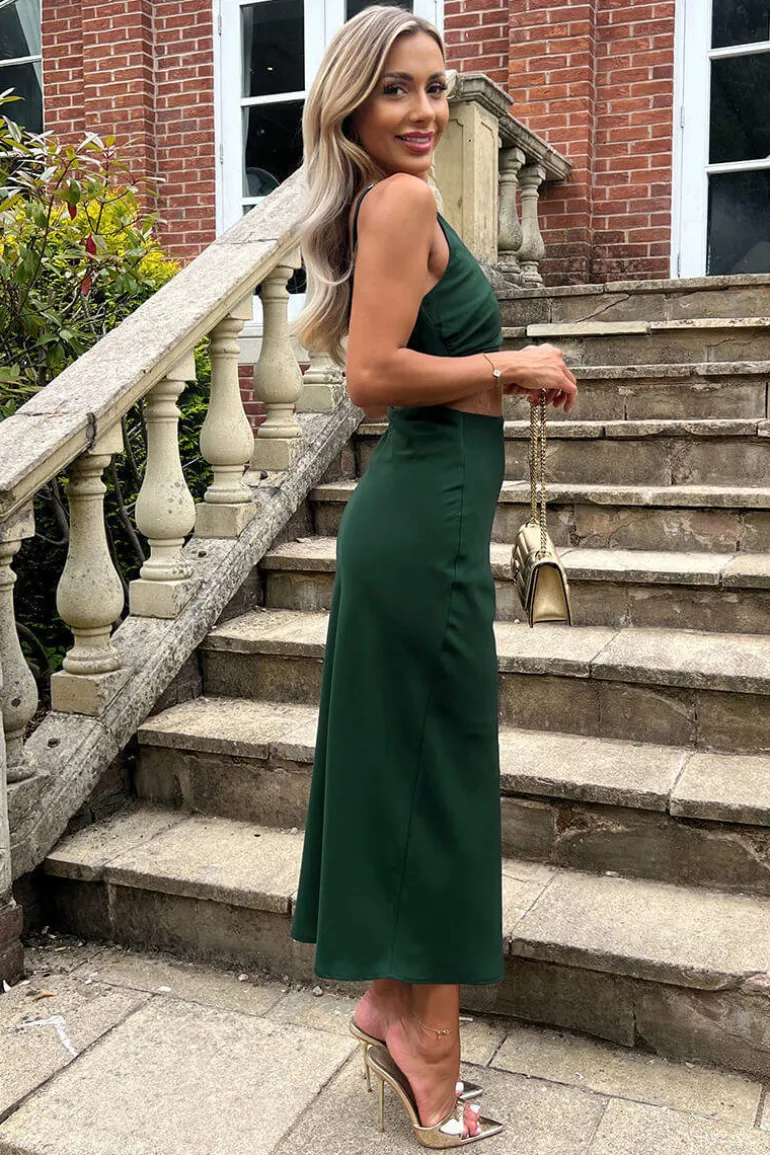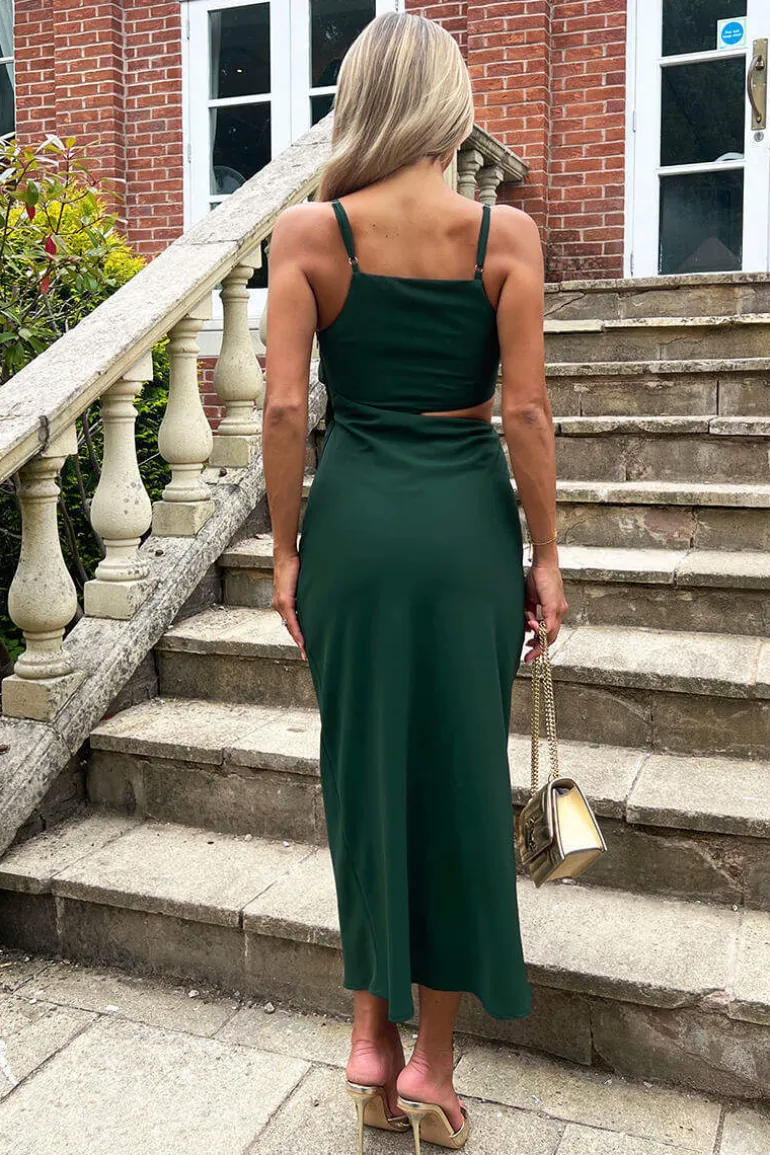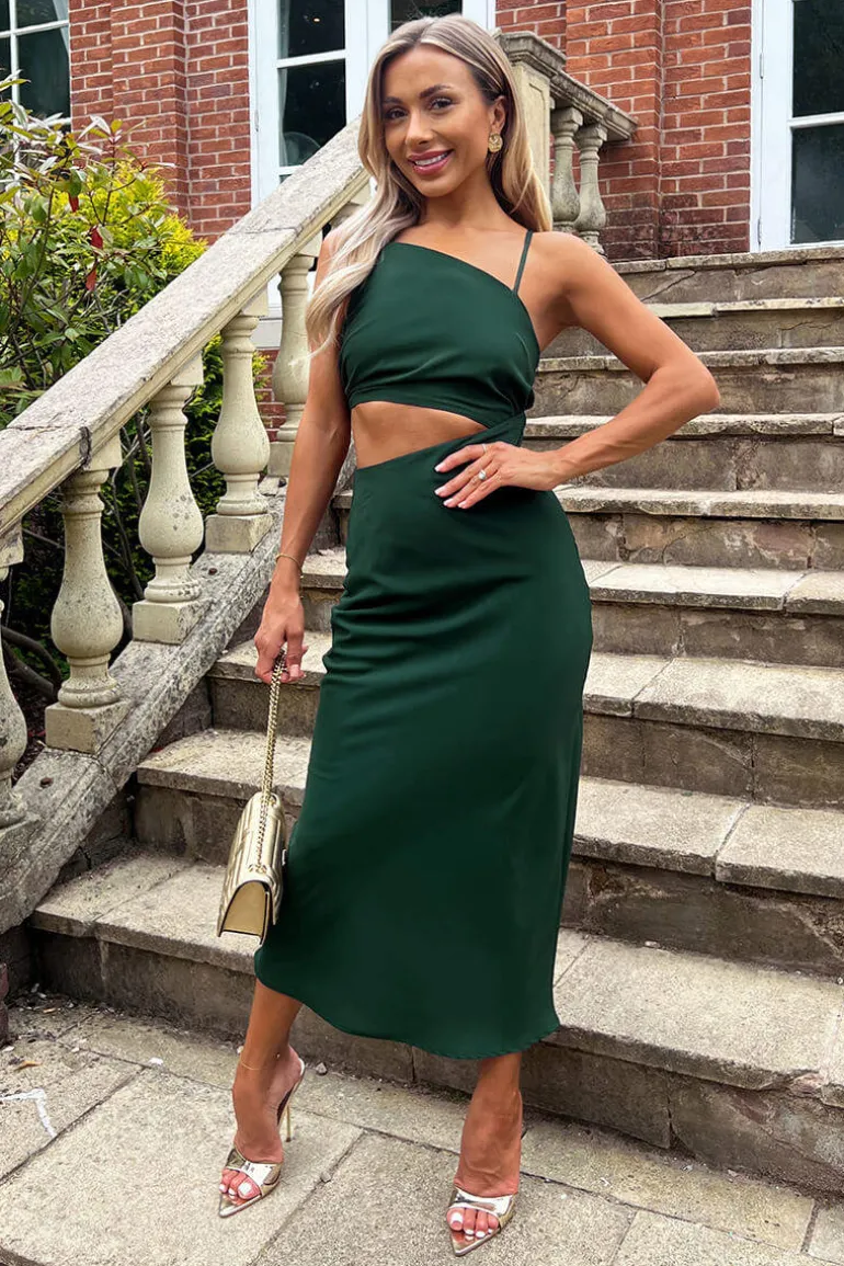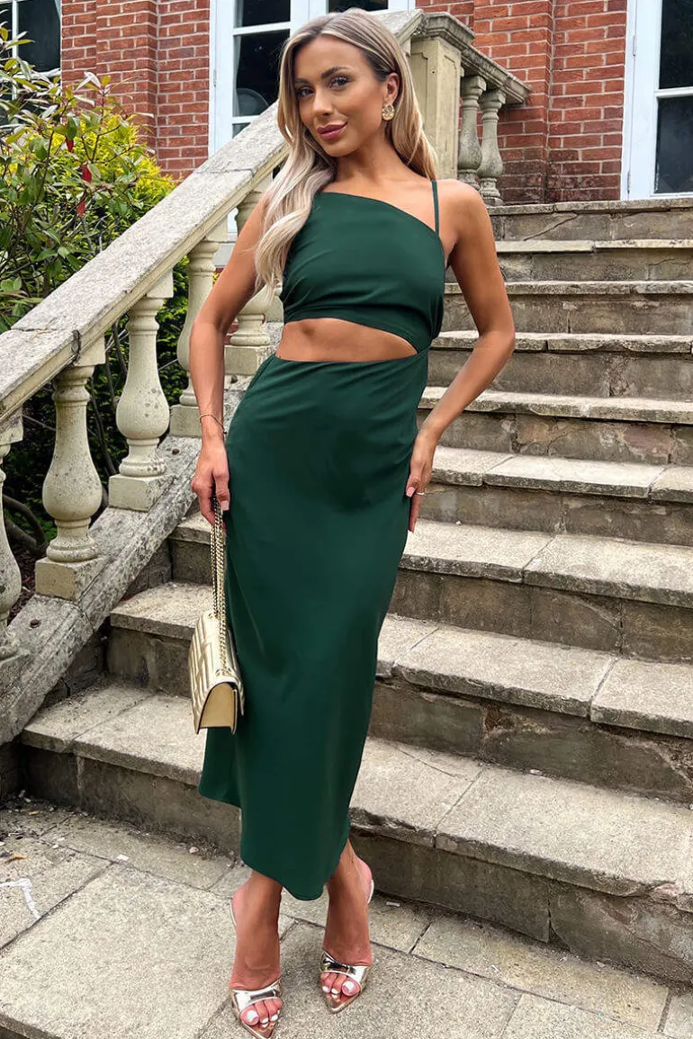 Our Teal Asymmetric Cut Out Midi Dress combines a classic silhouette