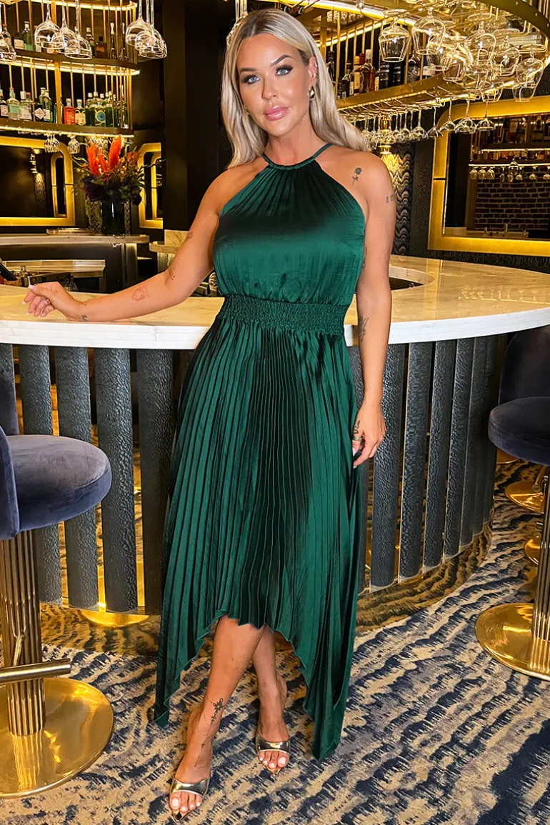 Our Teal Halter Neck Zig Zag Hem Pleated Midi Dress is the perfect