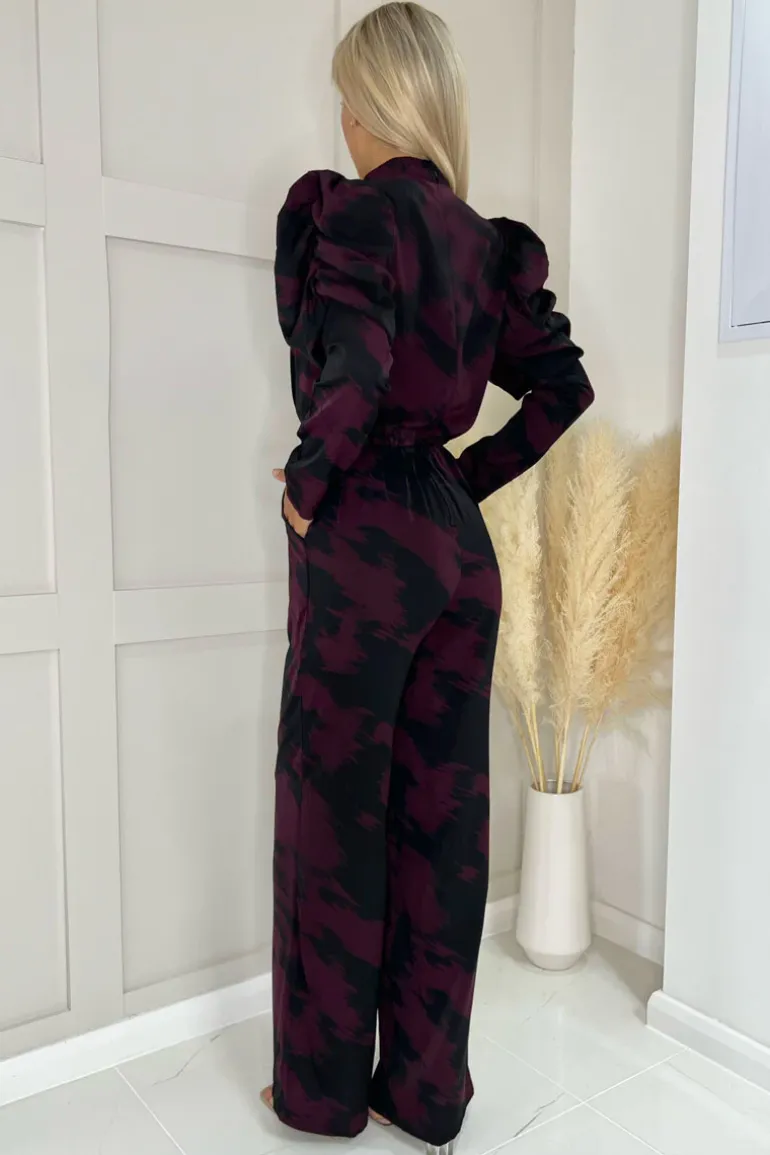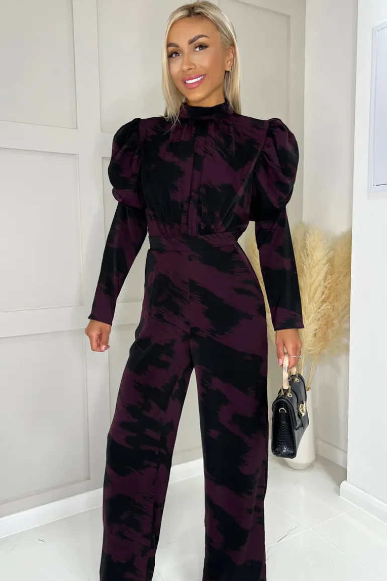 Our Wine Printed High Neck Puff Sleeve Jumpsuit is perfect for an