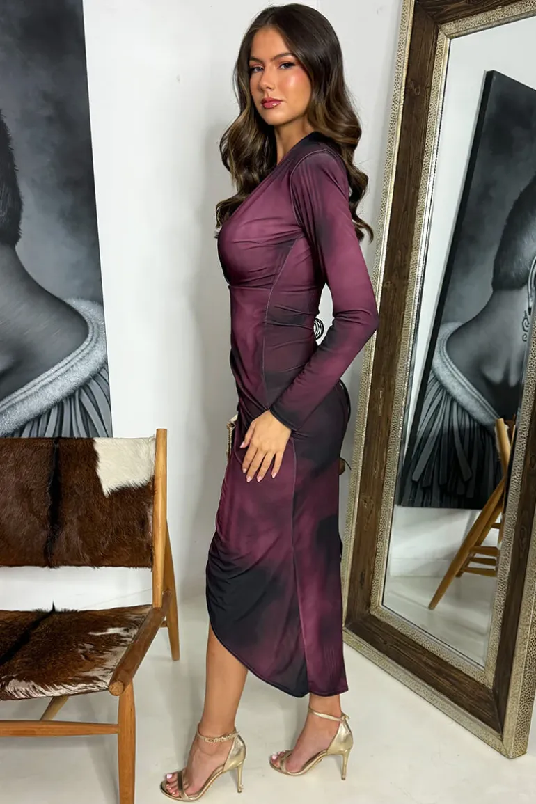 Be party-ready in our Wine Printed Long Sleeve Wrap Midi Dress.