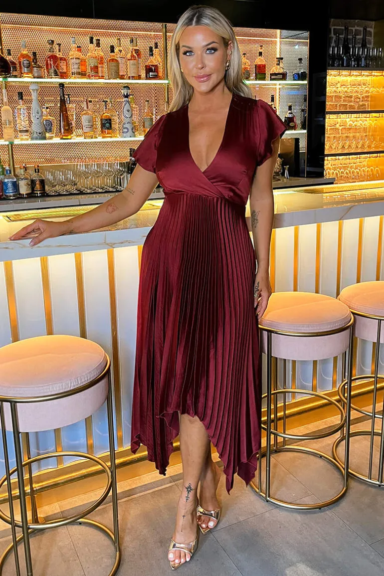Our Wine Wrap Top Zig Zag Hem Pleated Midi Dress is the perfect
